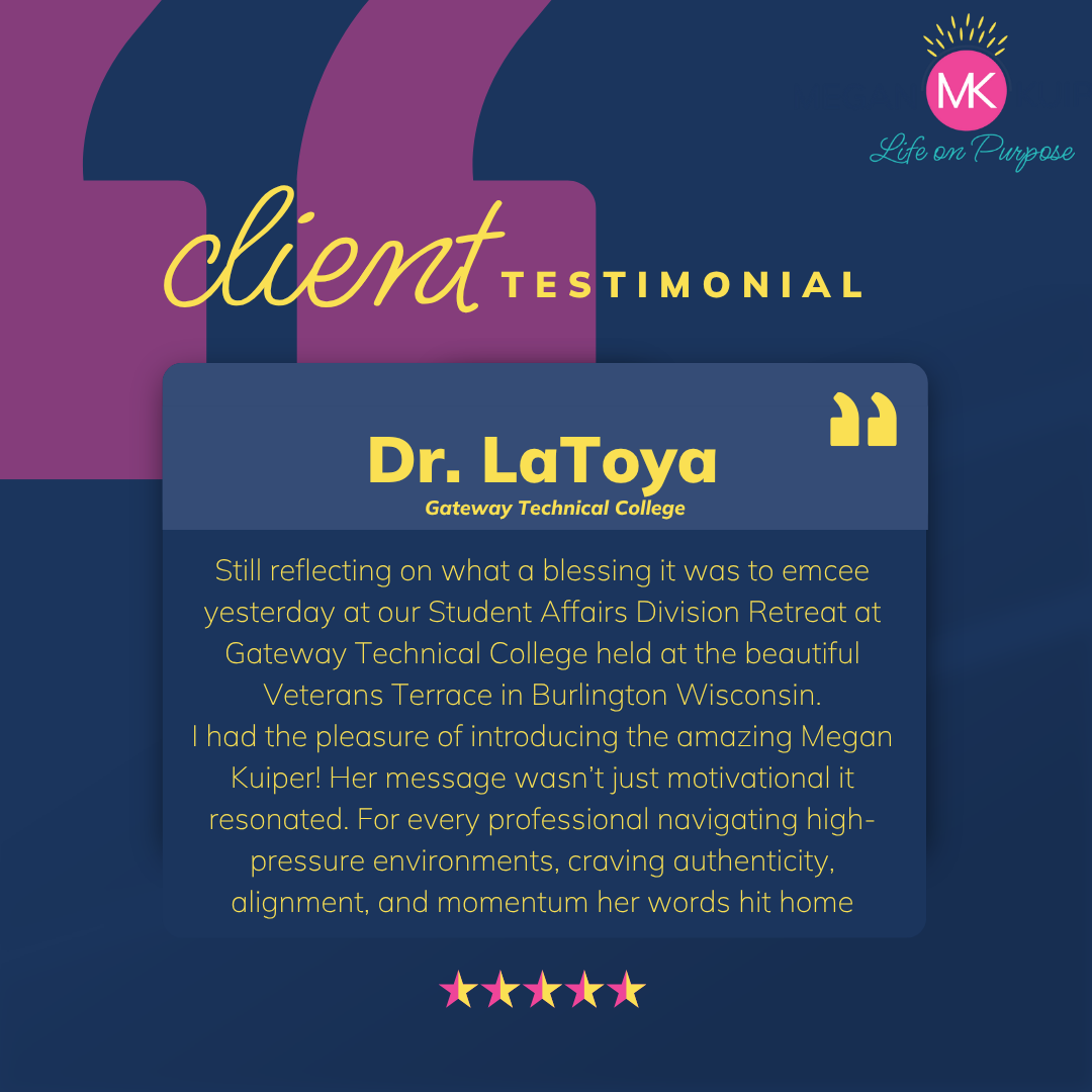 — keynote speaker, leadership coach, and corporate culture consultant who helps professionals and organizations build energized leaders and thriving teams. With more than 21 years of corporate leadership experience, including serving as a Director at Target Corporation, I bring both real-world credibility and a deeply human approach to leadership development.